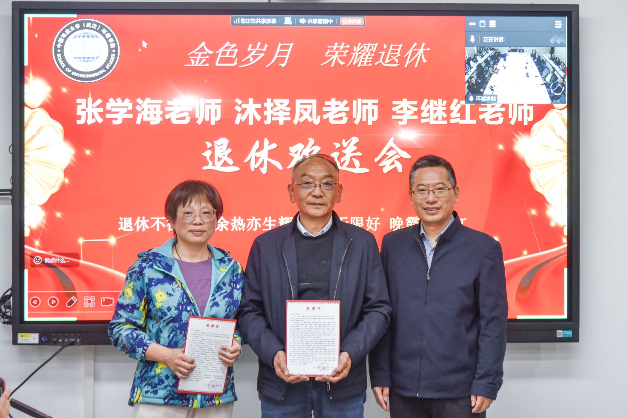 (通讯员陈俊男 摄影王宇辰 编辑申墁烨)岁月如歌,情怀依旧。10月29日下午,学院在科教楼四308会议室为张学海、沐择凤、李继红三位老师举行荣休欢送会。全体院领导、实验教学中心和学院办公室全体老师以及学生代表参加欢送会。会议线上线下同步进行,院直党支部书记陈俊男主持会议。
