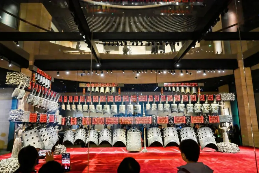曾侯乙编钟的65件青铜钟体构成战国时期的“交响乐团”,令人惊叹先民对和谐的追求;越王勾践剑历经2400多年仍寒光逼人,剑身菱形暗格纹饰和错金铭文展现春秋时期冶金巅峰;