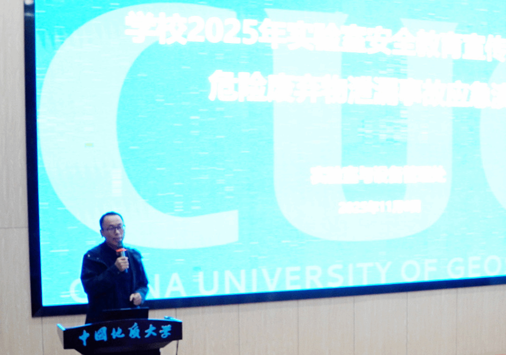 (通讯员 严冰 编辑申墁烨)为提高师生教学和科研工作中的安全防范意识和应急处理能力,保障师生生命安全,11月6日下午,由bv伟德国际1946承办的危险废弃物泄漏事故应急演练在未来城校区科教四楼108学术报告厅举行。活动邀请了来自无锡红十字会急救培训师曹志伟为全校师生开展实验室危险废弃物泄漏事故应急演练。实验室与设备管理处副处长翁华强、bv伟德国际1946副院长孙自永以及bv伟德国际1946、材料与化学学院、地理与信息工程学院、计算机学院、经济管理学院、地质过程与成矿预测全国重点实验室和地质微生物与环境全国重点实验室安全管理员及师生代表约250人参与。此次活动由bv伟德国际1946实验教学中心主任潘欢迎主持。