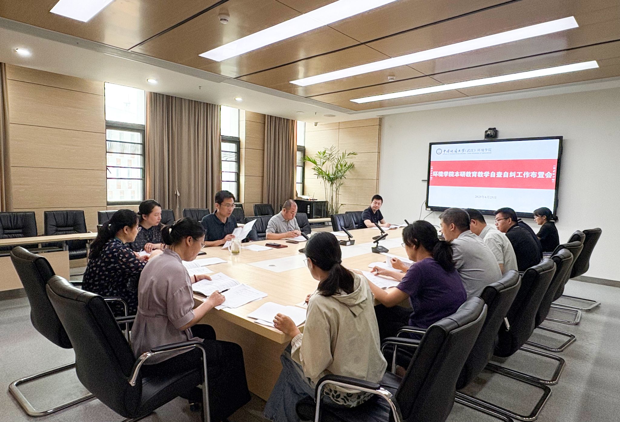 姜明敏总结发言。他指出,学院教育教学工作要始终坚持党的领导和社会主义办学方向,以培育新时代生态环保铁军为目标,全面落实立德树人根本任务。他表示,会议很有必要,自查和报告不是目的,整改与提升才是目标;共识非常重要,只有思想上高度统一,才能行动上步调一致;变革更加紧要,做起而行之的实干者,不当坐而论道的清谈客。期待学院教师关注课堂教学、实践教学、教学管理、日常教育等环节,把握教材、教案、教法、教改、教学效果等点位,正确看待和处理好教学与科研、教师与学生等关系,以本科生育人工作量、研究生导师负责制等为抓手,在科研反哺教学、学科交叉融合、基层教学组织、卓越导学团队等方面做强做优,在教学氛围营造、教学质量管控、教学资源拓展、教学成果申报等方面补缺补短,齐心协力推进学院本研教育教学高质量发展。
