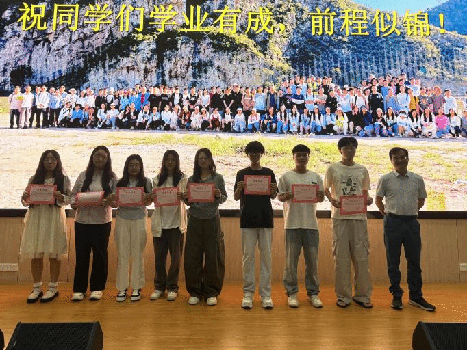 大会进行优秀实习生表彰。各教学班带队老师依次上台,为荣获“优秀实习生”称号的同学颁发奖状。