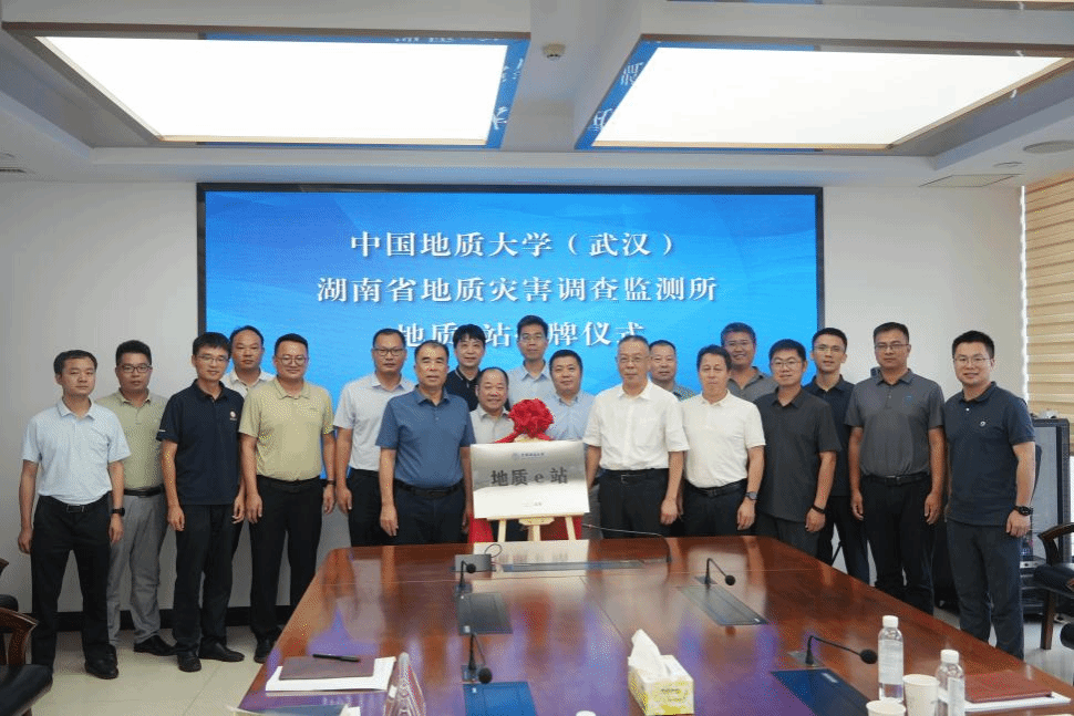 (通讯员/摄影赵恩民 编辑申墁烨)8月20日下午,校党委副书记、纪委书记唐忠阳,党委宣传部、学生就业指导处、bv伟德国际1946、卓越工程师学院相关同志赴湖南省地质灾害调查监测所(以下简称地灾所)调研交流,并举行“地质e站”揭牌仪式。地灾所所长赖继文、党委书记皇甫悦星,副所长张辉志、周鑫,相关部门和经济实体负责人参加座谈交流。皇甫悦星主持会议。