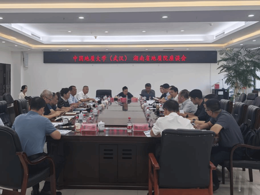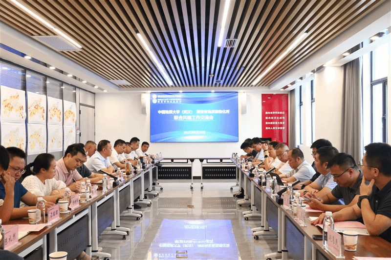 8月20日下午,调研团走访湖南省地球物理地球化学调查所,湖南省地质院科技合作室主任张勇战,所长廖凤初、党委书记雷建斌,地球化学过程与资源环境效应湖南省重点实验室主任骆检兰、物化所相关部门负责人参与座谈。骆检兰详细介绍学校与重点实验室共建工作的现阶段成果、存在挑战及未来规划。与会各方聚焦强化实验室共建、协同争取重大科研项目、联合申报高层次科技奖项、加强人才团队建设等核心议题深入交流。