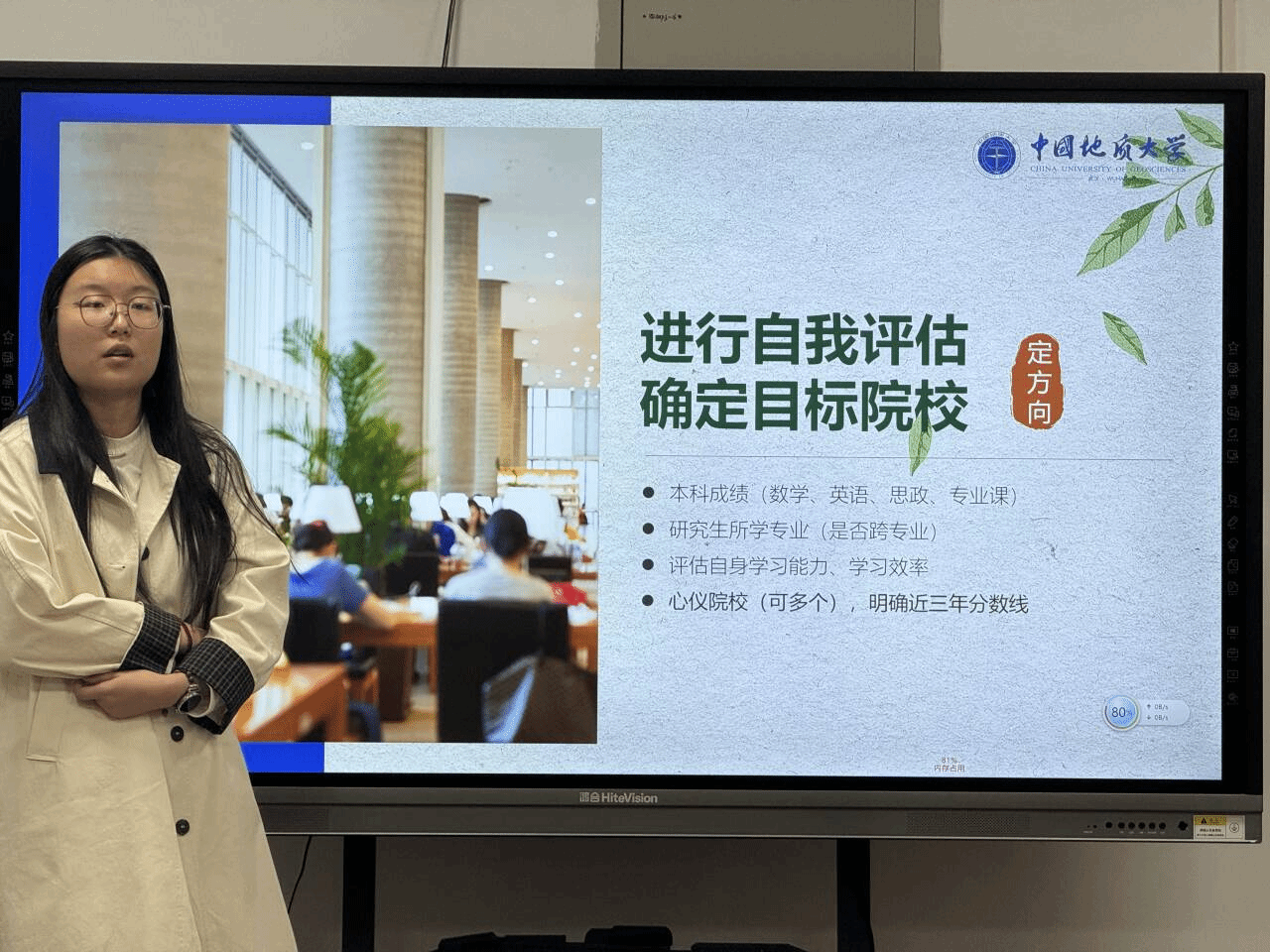 经验分享环节,四位优秀学生结合自身经历,分别从不同角度介绍了升学备考经验。保研至浙江大学的周莉同学围绕推免条件、时间安排、材料准备和面试经验进行了分享;考研至华中科技大学的汪晶同学介绍了分阶段备考方法和复习节奏安排;考研至南京大学的王佳嘉同学结合备考过程,建议同学们根据自身基础合理选择目标院校,并保持稳定的学习状态;跨考至西北工业大学的宋嘉琦同学分享了跨专业备考的准备过程,鼓励同学们结合个人兴趣和能力,主动拓展发展方向。