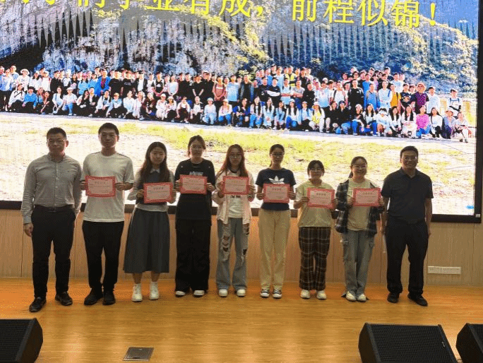 大会进行优秀实习生表彰。各教学班带队老师依次上台,为荣获“优秀实习生”称号的同学颁发奖状。