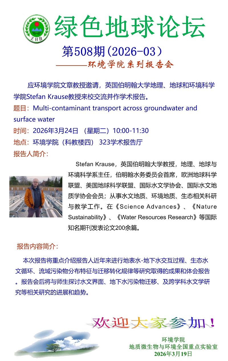 英国伯明翰大学地理、地球和环境科学学院Stefan Krause教授学术报告