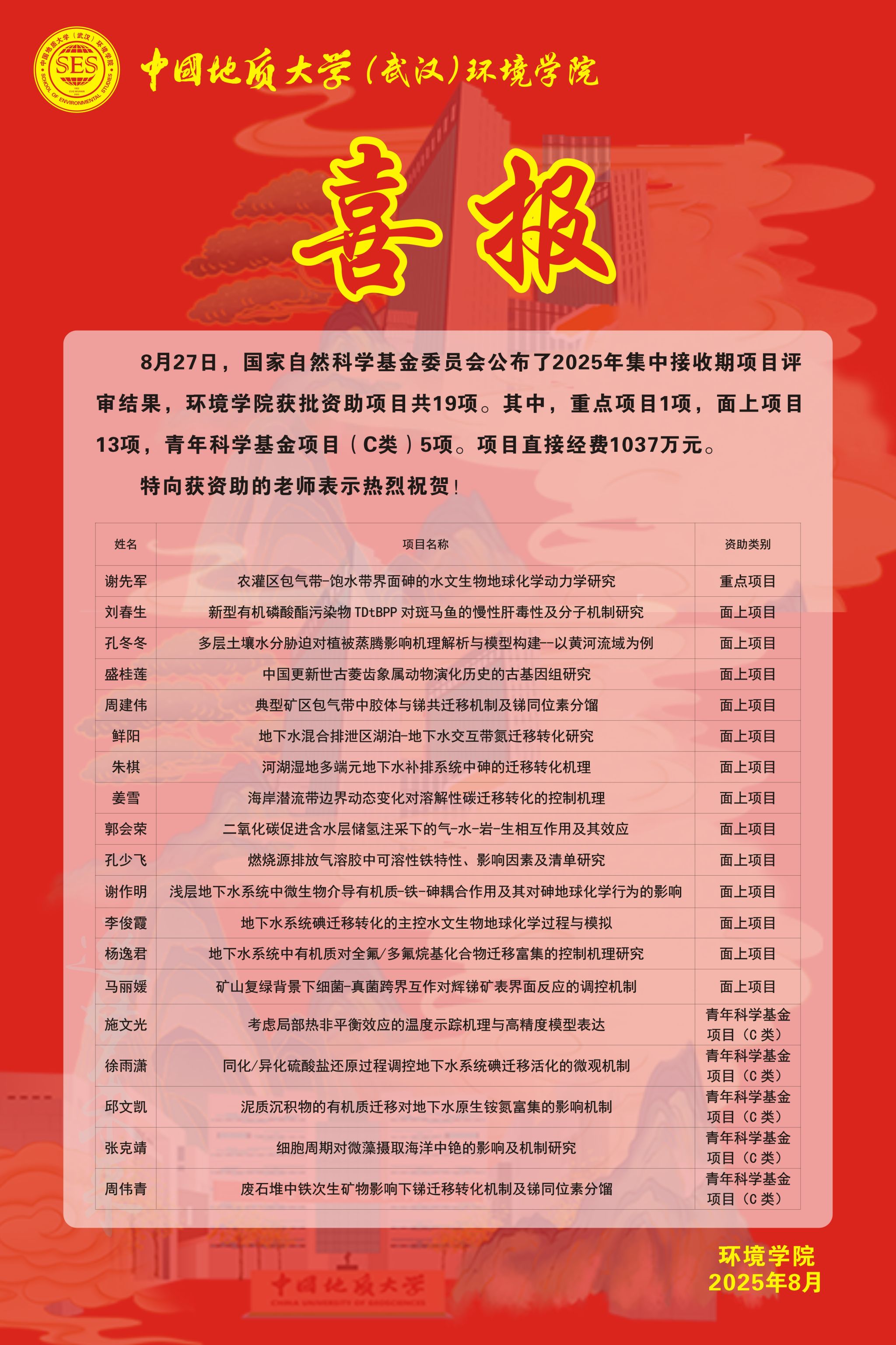 喜报!bv伟德国际1946获批国家自然科学基金项目19项